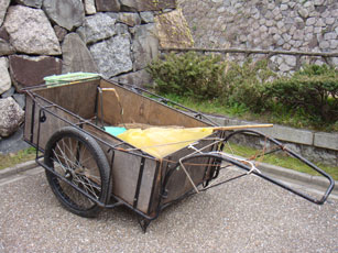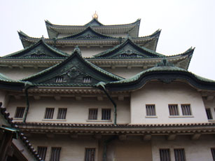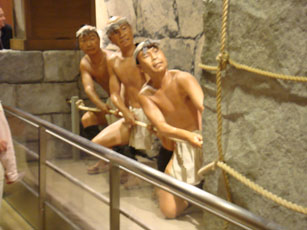 名古屋城内で、おっさん達の人形がなんか一生懸命石引っ張ってました。